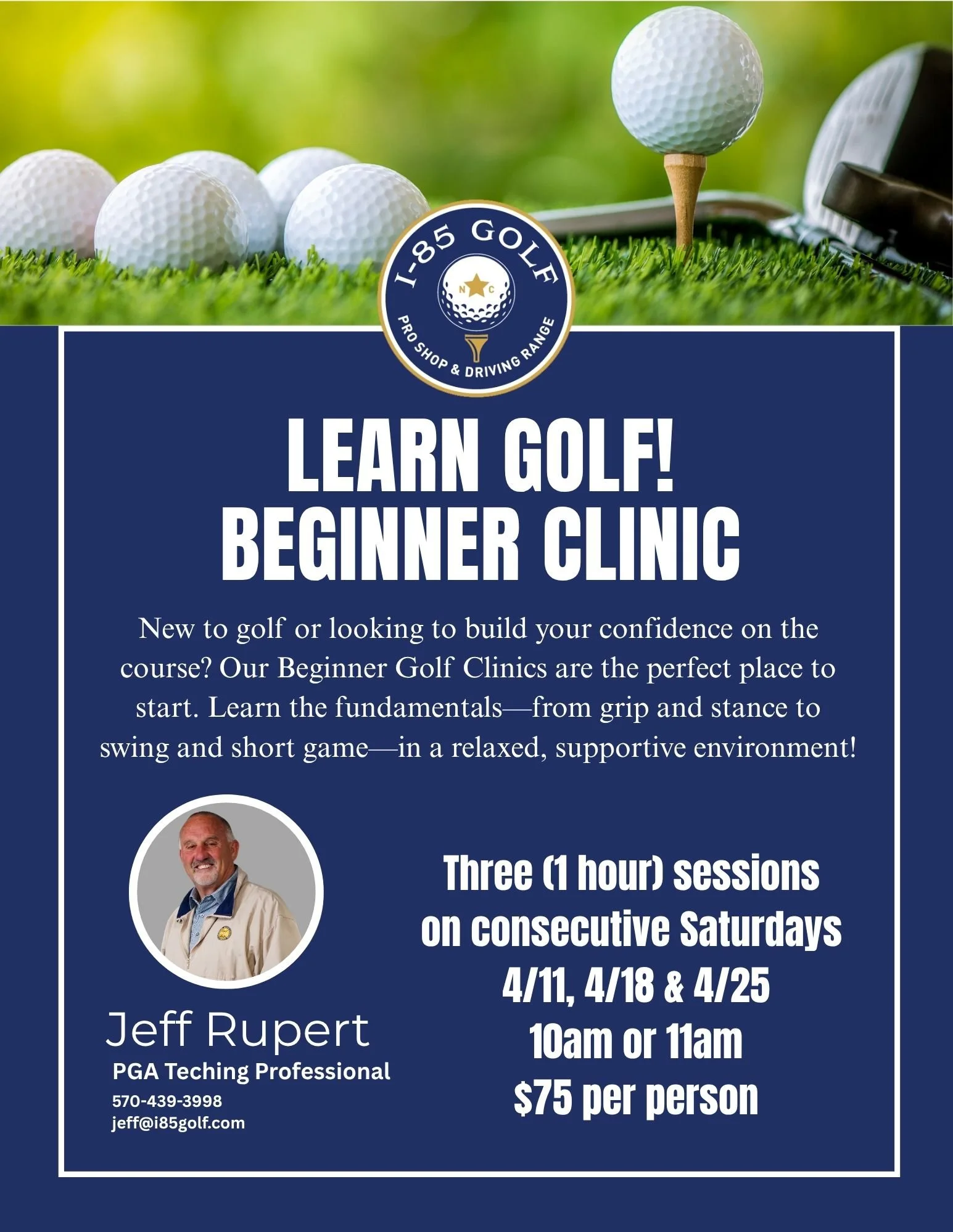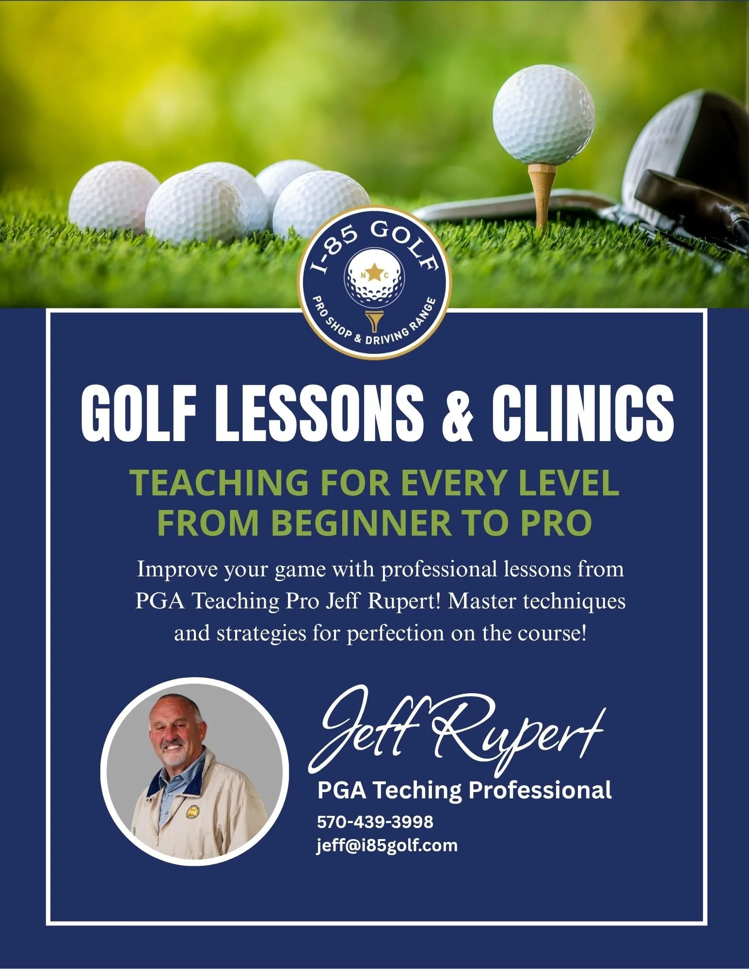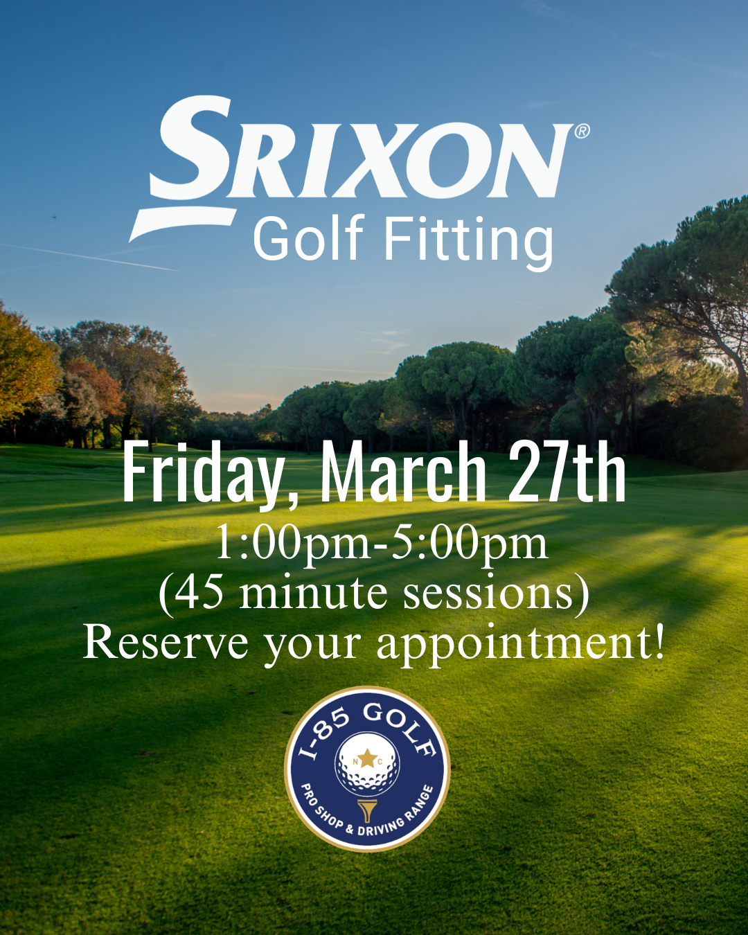 Have your clubs matched to your swing, body, and playing style to help you hit better, more consistent shots. Book your appointment today! Email josh@i85golf.com